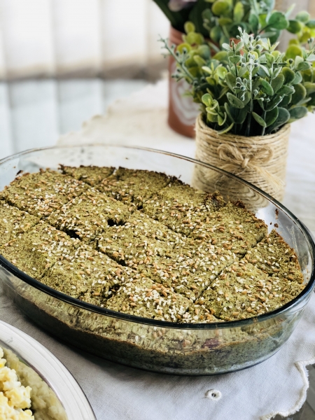 Esse é um prato simples e fácil de preparar na sexta-feira e deixar pra somente assar no sábado enquanto prepara a salada e arruma a mesa. Leva de 25 a 30 min em fogo médio até dourar. Fica meio esverdeado devido aos temperos frescos batidos.